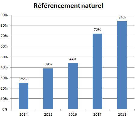 [2] Le référencement naturel est celui que réalisent les moteurs de recherche. L’internaute, en tapant sa phrase ou sa question, se voit proposer des résultats. Lorsqu’un site apparait en début de liste, la probabilité qu’il le visite est très forte.