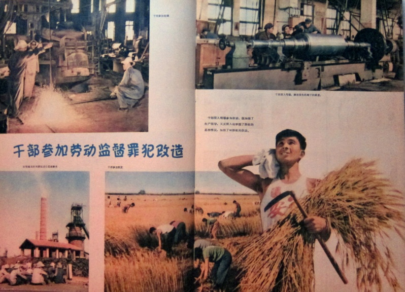 Le deuxième livre de photographie est un catalogue, celui de l’Exposition sur la réforme nationale des criminels par le travail (Ministère de la Sureté publique, Pékin, 1959). Alors que dans l’ouvrage précédent, le travail n’était qu’en représentation, dans celui-ci il est une activité humaine redresseuse de torts. Après la fondation de la République populaire de Chine, des purges eurent lieu à l’encontre des adversaires du nouveau régime communiste (des propriétaires terriens, des cadres du Kuomintang, des fonctionnaires, etc.). Arrêtés, ils furent mélangés aux criminels de droit commun dans des camps où le travail dont ils étaient chargés était censé faire perdre aux uns et aux autres leurs vices idéologiques ou moraux.