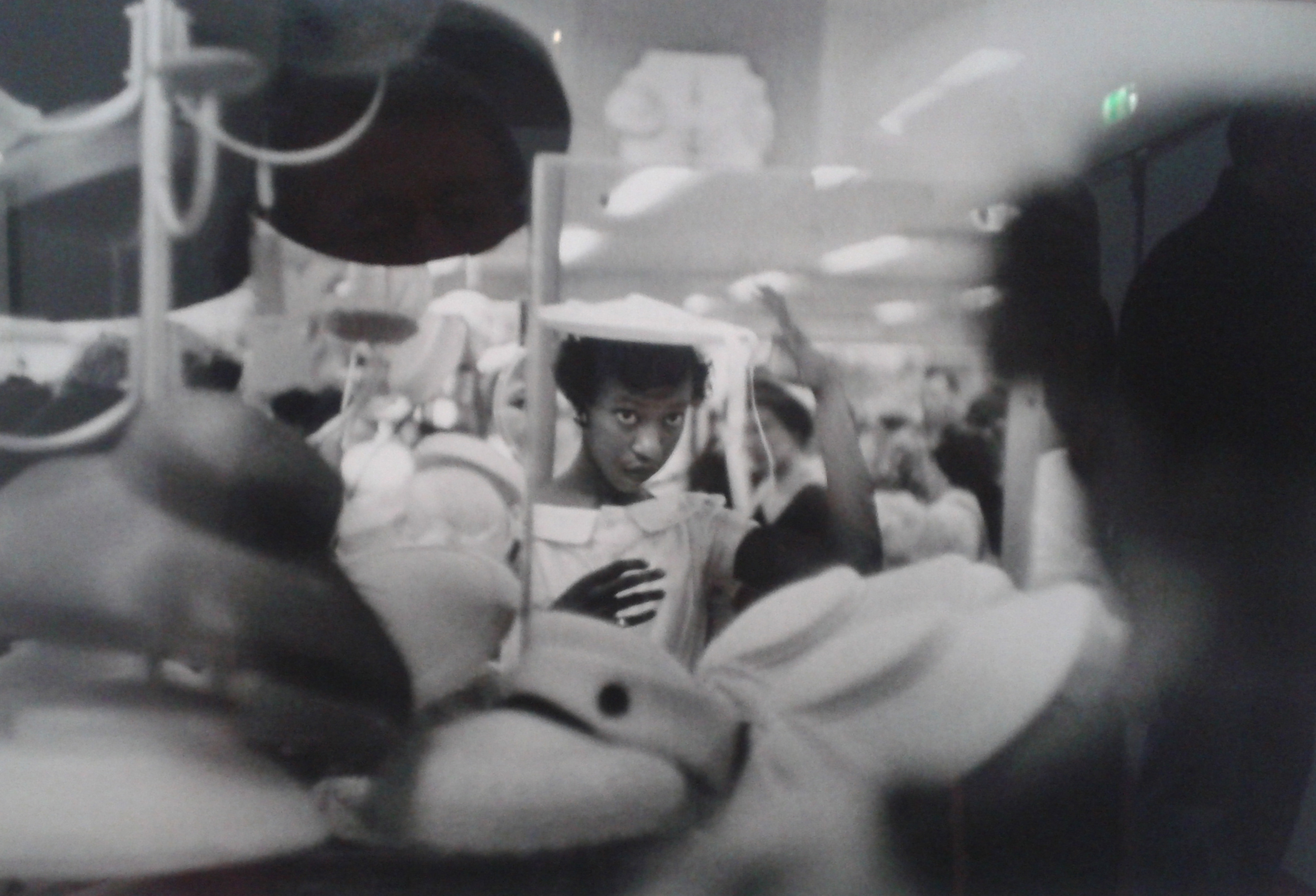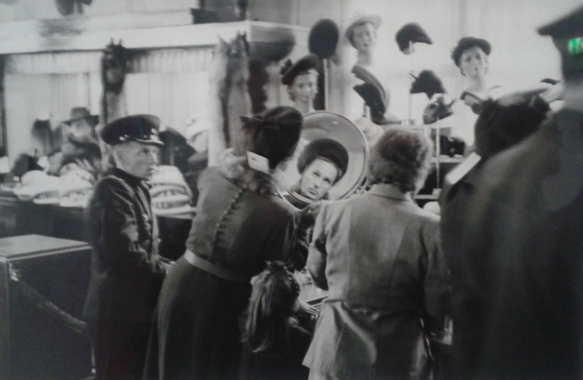 Années 50. Nous sommes en pleine guerre froide. Deux systèmes politiques et économiques s’affrontent, mais Henri Cartier-Bresson les rassemble dans des boutiques de chapelier. On ne peut qu’être frappé par l’homogénéité de sa vision : une noria de chapeaux ou de personnages et au centre un regard qui nous fait face comme pour nous demander notre avis : « est-ce qu’il me va bien ? ».