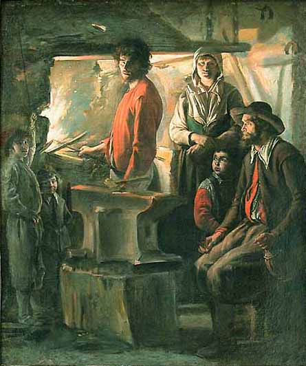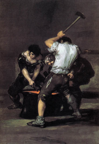 Cette hypothèse confirmerait que, ce qu'a en vue l’artiste, c’est le travail dans son sens le plus originel, à savoir une confrontation réussie de l’homme avec la matière. C’est peut-être aussi la raison pour laquelle il représente le forgeron seul alors que c’est un travail essentiellement collectif. D'ailleurs, dans toutes les représentations picturales de forgerons qui ont précédés la sienne, c’est toujours un groupe d’hommes qui est représenté, chacun assurant sa part de la tâche : on peut ainsi penser à Velasquez, Le Nain, Giordano, Goya, ou moins prestigieux mais fidèle au travail de la forge de son époque, Cormon.