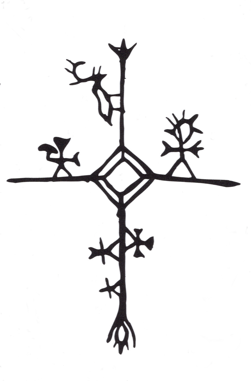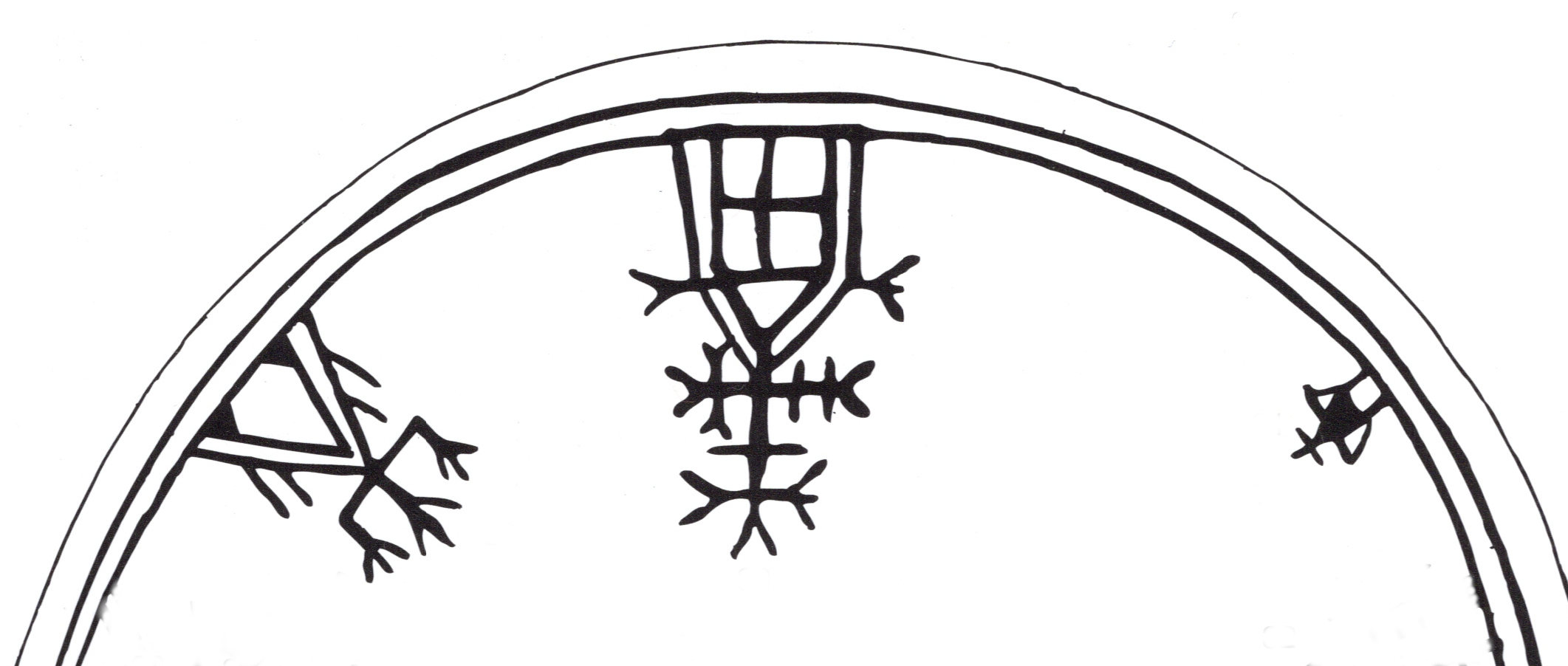 [3] Toutefois le monde des figures des tambours Samis est beaucoup plus varié que celui des gravures rupestres qui reste limité à diverses formes de gros gibiers, quelques figures humaines et signes abstraits.