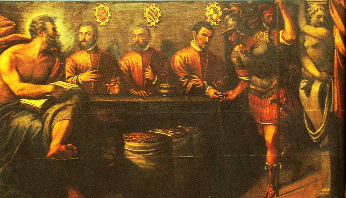 [4] Le Prince sérénissime rend visite aux galères (détail). Peinture attribuée à G.B. d’Angelo del Moro, XVI° siècle