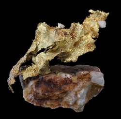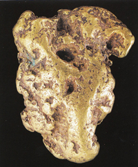 Or natif jaune de forme lamellaire, sur quartz                                                  Pépite d’or « Goné »