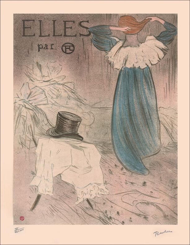 [2] Douze lithographies ont été réalisées par Toulouse-Lautrec pour Elles, mais seulement onze ont intégré l’édition originale, sans que l’on sache pourquoi la douzième (« Le sommeil ») en a été exclue.